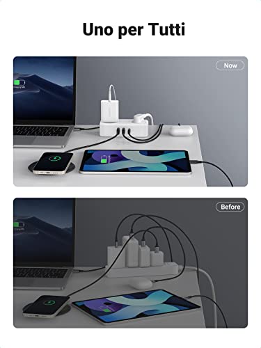 [Ricarica Simultanea] Le porte USB di questa presa multipla riconoscono automaticamente i tuoi dispositivi e forniscono la massima velocità di ricarica. La porta USB-C supporta fino a 30W se utilizzata da sola, ideale per caricare un iPhone 13 dallo 0-58% in soli 30 minuti. La porta USB-A supporta fino a 18 W se utilizzata da sola, carica i dispositivi compatibili con QC 3.0 fino all'80% in soli 35 minuti.
