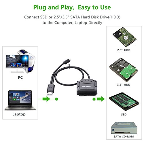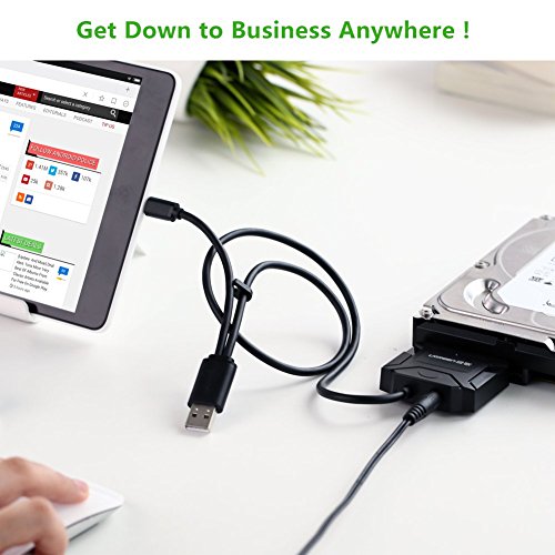 UGREEN Cavo Convertitore USB 2.0 a SATA con Funzione OTG per HDD/SSD di 2,5" e 3,5", BLU-RAY DVD, CD-ROM, DVD-ROM e CD-RW con Adattatore di Corrente da 12V e 2A