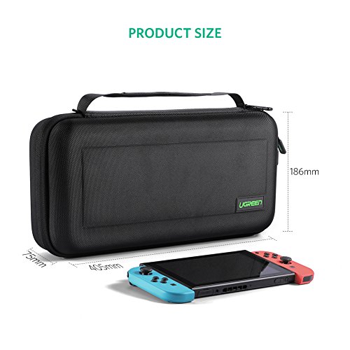 UGREEN Custodia Rigida per Nintendo Switch Borsa in EVA Antiurto con Maniglia per Console, Docking Station, Joy-Con, 20 Cartucce di Giochi, Adattatore di Alimentazione e Altri Accessori Digitali. Nero