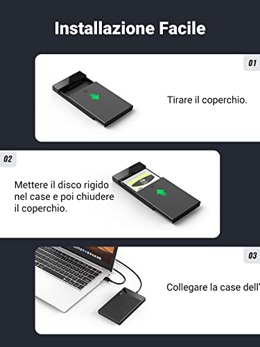 [ Trasferimento di 5Gbps ] UGREEN case per disco rigido da 2,5 pollici consente di usufruire di una velocità di trasferimento fino a 5 Gbps, 10 volte superiore a quella dell'USB 2.0. Supporta il protocollo UASP che accelera la velocità di lettura e scrittura dell'unità SSD.