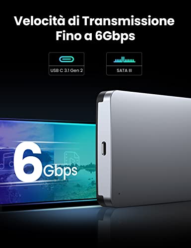 UGREEN Case Esterno Disco Rigido 2.5" USB C 3.1 Gen 2 con USPA Fino a 6Gbps, Custodia Esterna HDD SSD Compatibile with SATA da 7mm 9.5mm WD Toshiba Seagate Hitachi, PS4, Xbox, Crucial