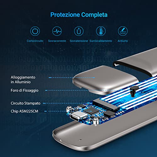 [ Trasferimento di 6Gbps ] Dotato di una potente porta USB C 3.1 Gen2, UGREEN case M.2 può offrire la massima velocità di trasferimento fino a 6 Gbps, più veloce rispetto al tradizionale alloggiamento del disco rigido M.2 con porta micro USB (5 Gbps ). Supporta anche il protocollo UASP che, se abbinato a un host compatibile con UASP, offre fino al 70% di velocità in più rispetto alla tradizionale USB 3.0.