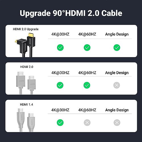 [Perche Scegli Cavo 90 Gradi] Cavo HDMI di 90 gradi è ideale per collegare facilmente con i dispositivi HDMI montati nello spazio stretto (come TV a parete), protegge efficacemente l'interfaccia originale HDMI e prolunga la vita dell'utilizzo di cavp. Nota: Si prega di confermare se l'interfaccia HDMI del tuo dispositivo è di 90 gradi prima di acquisto.