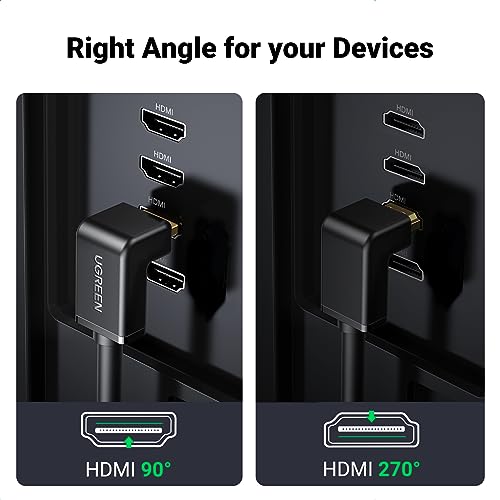 [Trasmissione Veloce e Senza Ritardo] UGREEN Cavo HDMI 90 gradi è realizzato in rame senza ossigeno, offre una velocità di trasmissione fino a 18 Gbps, senza sfarfallio e ritardo durante la riproduzione di video