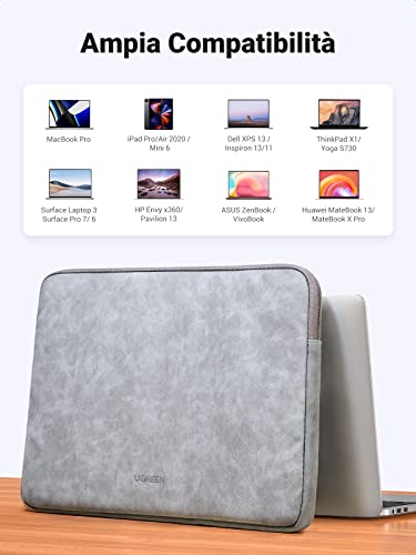 UGREEN Laptop Sleeve 13-14 Pollici (Fino a 14,96) Laptop Custodia PU Impermeabile 13,3" Compatibile con MacBook Air M1/ MacBook Pro 13,3"/ ASUS Zenbook/Surface Pro/Huawei Matebook