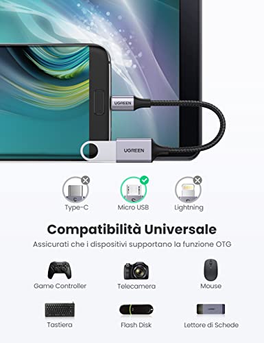 UGREEN Cavo OTG Micro USB, Adattatore Micro USB a USB 2.0 Compatibile con Galaxy Tab A 10.1 (2016) A10/A7(2018), S7/ S6 Edge S5, Huawei P Smart 2019 Y5 Y6, Honor 8X