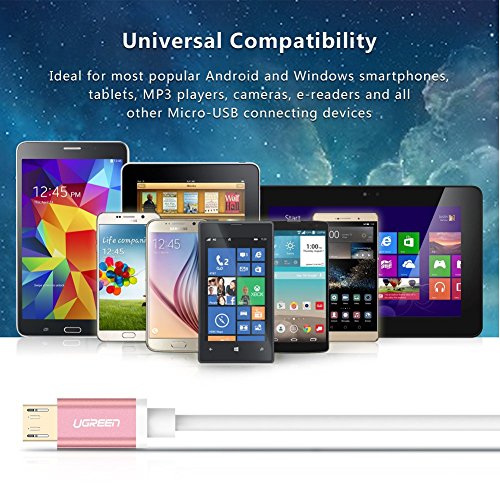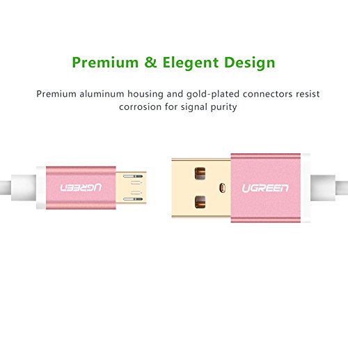 UGREEN Cavo Micro USB 2.0 a USB USB Cavo per Trasmissione Dati e Ricarica in Alluminio Connettori Placcati in Oro, per Android Smartphone, Samsung, HTC, Motorola, Nokia (2M, Oro Rosa)