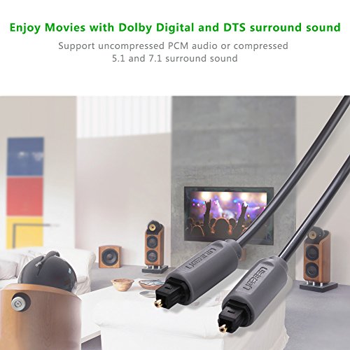Ugreen Cavo Ottico Audio Digitale Toslink per PS3, PS4, SKY, SKY+, SKYHD, XBOX One, Blu-ray, CD, DVD, DAT, LD, PC, Mini Disc, Amplificatore, Altoparlante, Player ed altri sistemi audio o Home Cinema, Grigio, 2m