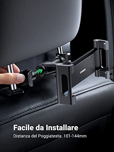 UGREEN Porta Tablet Auto Rotazione a 360 Gradi, Supporto Tablet Auto da 4,6-12,9 Pollici, Compatibile con iPad Pro Mini Air 2022/2021/2020, Galaxy Tab A8/S8/S7, Surface Pro 7/6, Switch, ecc