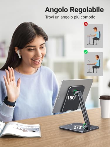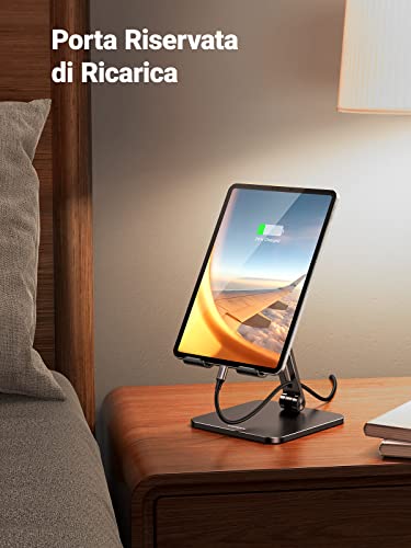 UGREEN Porta Tablet da Tavolo Supporto Tablet Regolabile Porta Cellulare Tablet con Doppie Angolo Alluminio Compatibile con Galaxy Tab, iPad, iPad Mini, iPad Air 2022/2021 e Altri da 4-12.9" Nero