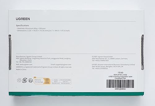 Robusto e Stabile: Realizzato in lega di alluminio di alta qualità, UGREEN porta tablet in alluminio è durevole e robusta. Il design del centro di gravità inferiore può anche mantenere stabile e antiurto il supporto, garantendo che il supporto possa sopportare fino a 800g.