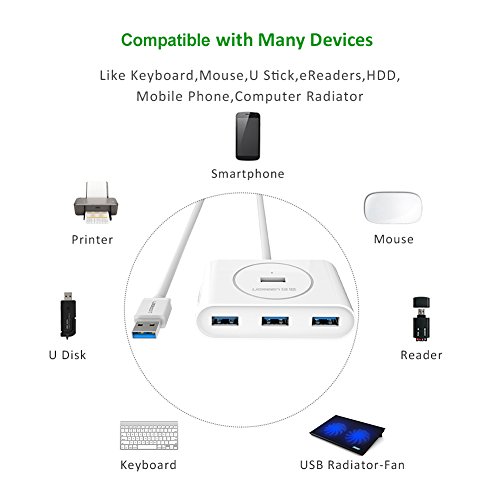 Hub USB 3.0 con 4 porte USB 3.0/1.1/1.0 specifiche e piacevoli all'aspetto. L'hub Ugreen USB 3.0 super veloce consente di collegare facilmente fino a 4 dispositivi USB come ad esempio: hard disk esterni, chiavette USB, dispositivi di input (mouse, tastiera USB), cuffia, eccetera. Grazie al prodotto semplice e al design compatto è specialmente indicato per laptop e PC desktop. I collegamenti non creano disturbi a vicenda.