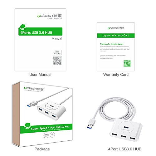 Ugreen, USB 3.0 a 4 porte super veloce, hub extra leggero, fino a 5 GB per Apple MacBook, Windows laptop e Ultrabook, tablet PC e smartphone, lunghezza 1 m bianco bianco USB 3.0 Hub
