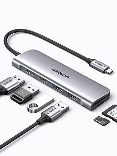 UGREEN Revodok Hub USB C HDMI 6 In 1 Adattatore USB C a HDMI 4K USB 3.0 Lettore di Schede SD TF Compatibile con MacBook Pro Air M2 M1, iPad Pro, Galaxy S24 Plus Ultra, iPhone 15 Plus Pro Max (Argento)