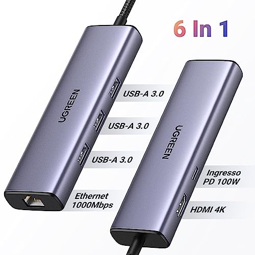 UGREEN Revodok Hub USB C Ethernet Gigabit HDMI 4K con PD 100W Adattatore USB C a USB 3.0 Compatibile con MacBook Pro Air M2 M1, iPad Pro Air, Galaxy S24 Plus Ultra, iPhone 15 Plus Pro Max, Chromebook