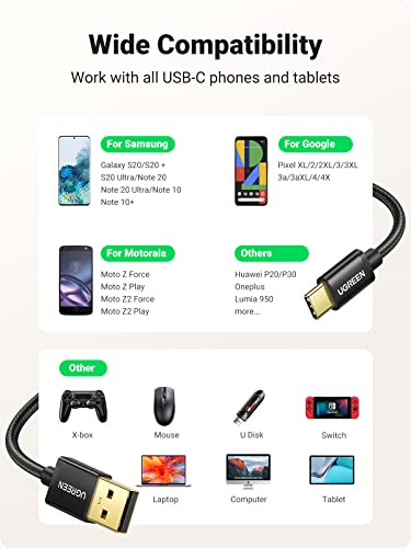 UGREEN Cavo USB C 3A Ricarica Rapida, Cavo USB Type C 2 Pezzi in Nylon, Cavo USB Tipo C Compatibile con iPhone 15 Plus Pro Max, Galaxy S23 S22 S20, Pixel 7 6, Xiaomi Redmi Note 10. 2M