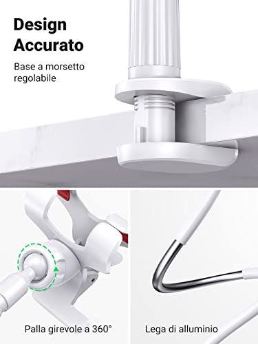 UGREEN Supporto Cellulare da Tavolo, Porta Telefono con Collo Dell'Oca, Regolabile 360° Compatible con iPhone 15/14/13/12 Serie, Galaxy A50 S20, Huawei P40 P30 e Altri Smartphone da 4 a 7.2" Bianco