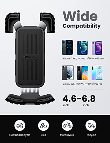 UGREEN Supporto Cellulare da Bici, Supporto Universale per Telefono da Moto per Manubri da Moto Compatibile con iPhone 14, 13, 12, XR, X, 8, Galaxy S22, S21, S20, ecc