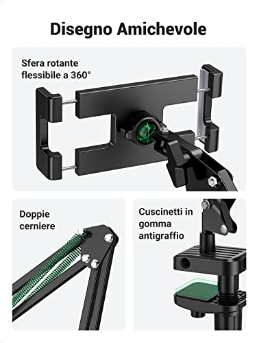 UGREEN Supporto Tablet da Tavolo con Braccio in Metallo, Porta Tablet da Letto Compatibile con iPad, Mini Air 2022 2021, Galaxy Tab S9 A8, iPhone 15 ed Altri Dispositivi da 4 a 12,9 Pollici