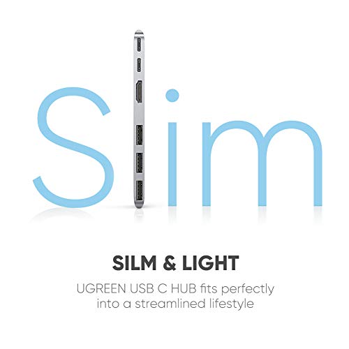 UGREEN Hub USB C Ultra Sottile con 4K HDMI, Thunderbolt 3 Ricarica Rapida, 3*USB 3.0, USB C 5Gbps, Hub USB Type C HDMI in Alluminio per MacBook Air 2019 2018, MacBook PRO 2019 2018 2017 2016 15" 13"