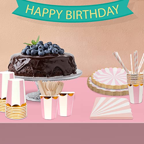 UHAPEER Rosa Set di Articoli per Feste, Set di Stoviglie usa e getta, 121 pezzi, con piatti, bicchieri, cannucce, tovaglioli e tovaglia, per Feste di Compleanno di Bambini, Ragazze e Donne