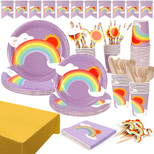 UHAPEER Set di stoviglie Arcobaleno per feste, Set di Stoviglie usa e getta, 98 pezzi, per feste di compleanno, feste di nozze e compleanni, Natale, per Feste di Compleanno di Bambini