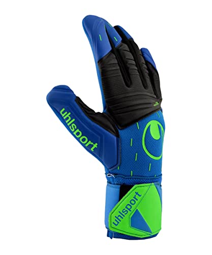 Uhlsport AQUASOFT HN Guanti da portiere Keeper Calcio Soccer Gloves con fissaggio al polso - specifici per le stagioni bagnate - Pacific blu/nero/verde fluo - taglia 11