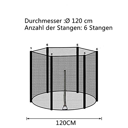 UIGJIOG Rete Ricambio Trampolino, Ø120/140/150/183/244/306/366/396/427/488 cm Adatto per 6/8/12 Pali, Rete di Ricambio per Tappeto Elastico, Antistrappo, Resistente agli UV,120 cm 6 stangen