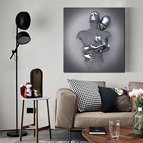 UIGJIOG Stampa su Tela con Figura di Coppia Astratta, Design in Metallo 3D in Filo d'acciaio, Pittura Murale per Soggiorno Camera da letto, senza cornice,Argento,60X60cmNo Frame