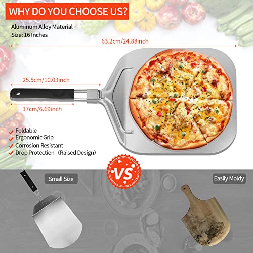 【Non più braccia bruciate o torte che cadono】 Estrarre la pizza dal forno o posizionarla sulla griglia non è mai stato così facile. La sottile pala in alluminio scivola facilmente sotto pizze e torte, molto più facilmente della spessa crosta di legno e con il nostro nuovo spingi pizza super grande in alluminio, anche una pizza grande da 16 pollici può essere facilmente spostata.