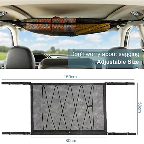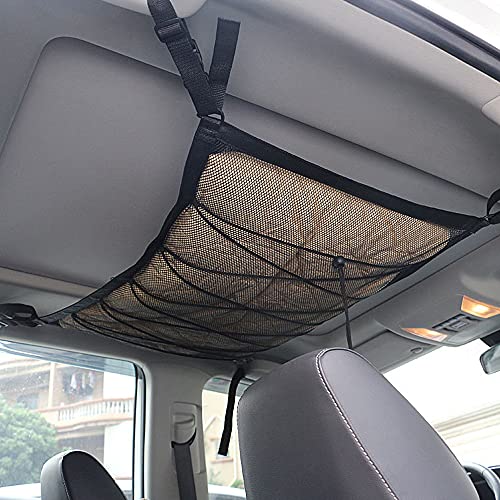 UIHOL Rete da Auto Soffitto, Rete Portabagagli da Soffitto per Auto, Universale Borsa in Rete Carico per Quattro Braccioli del Tetto, Organizer Bagagliaio per SUV, Furgone (Coulisse in Rete)