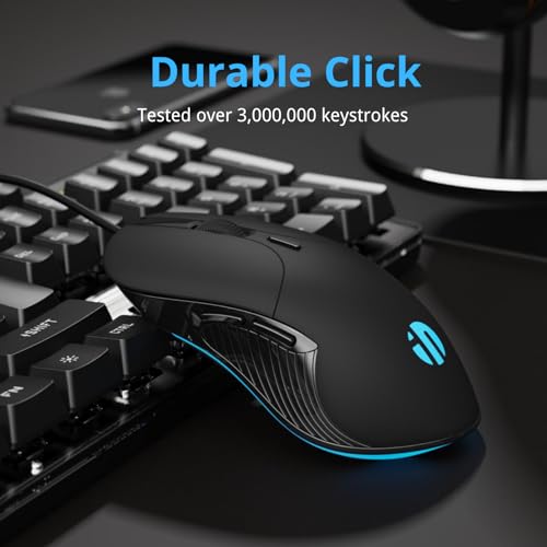 Ergonomico e silenzioso: Progettato con materiali amici della pelle, poggiapulsi antiscivolo e rotelle di scorrimento in gomma 3D per garantire comfort, precisione e meno errori durante la navigazione su Internet e nel gioco. Questo mouse per computer con pulsanti sinistro e destro silenziosi crea un ambiente tranquillo.