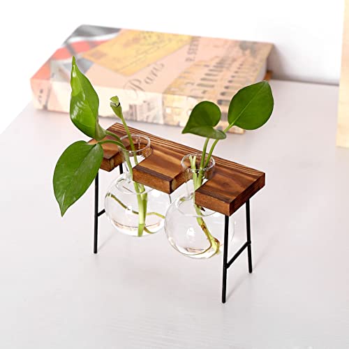 Uinfhyknd Vaso creativo bottiglia di vetro idroponica vaso trasparente cornice in legno caffè decorazione tavolo scrivania vaso (vaso)