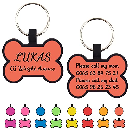 Medaglietta rotonda per cani - 3 x 3 cm (1,2 x 1,2 pollici). Grande tag disponibile con ampio spazio per il tuo cognome, codice postale, phn no, chip co phone no e chip no in un formato facilmente leggibile. Il colore vibrante, il nome è inciso in caratteri neri grandi, facili da leggere, non è qualcosa che può sbiadire con il tempo.
