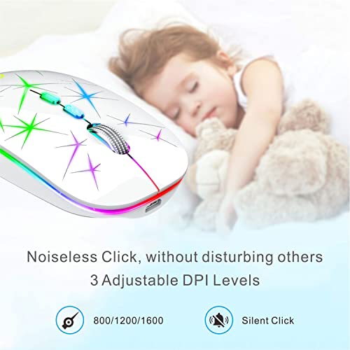 Uiosmuph U11 Bluetooth Mouse Senza Fili, Mouse Wireless 2.4G Ricaricabile Mouse Wireless Silenzioso Mouse Ottico Wireless Senza Fili con Ricevitore Nano USB per PC/Laptop/Windows (Bianca)
