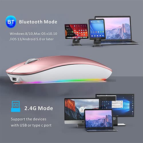 Uiosmuph M530 Bluetooth Mouse Senza Fili, RGB Mouse Wireless 2.4G Ricaricabile Mouse Wireless Silenzioso Mouse Ottico Wireless Senza Fili con Ricevitore Nano USB per PC/Laptop/Windows(Oro Rosa)