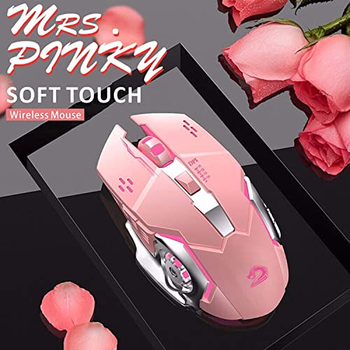 Uiosmuph T85 Mouse Gaming Wireless Ricaricabile, 2,4G USB LED Mouse Senza Fili Ottico, Sleep Automatico, Impugnatura Ergonomica, 3 DPI Regolabili, 6 Pulsanti per PC/Notebook (Rosa)