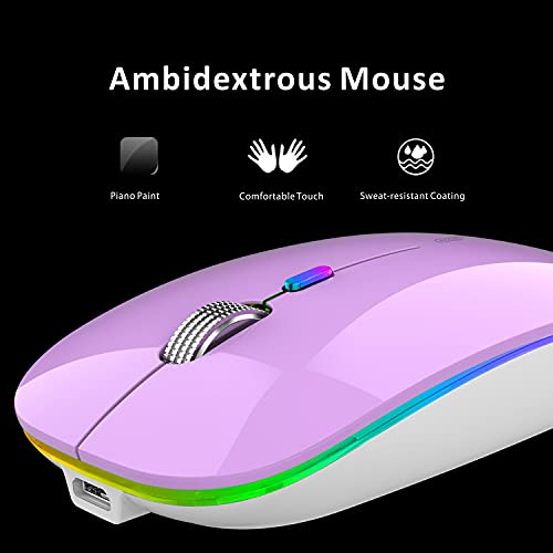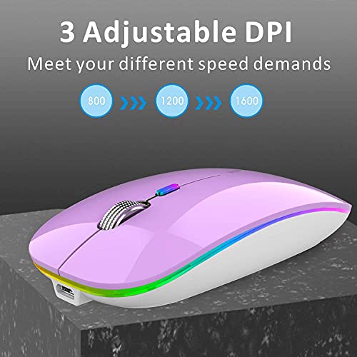 Uiosmuph G12 Mouse Wireless, 2,4 GHz con Ricevitore USB Mouse Senza Fili, DPI Regolabile LED Mouse Wireless Ergonomico for Mac/PC/Laptop/iPad - Purple