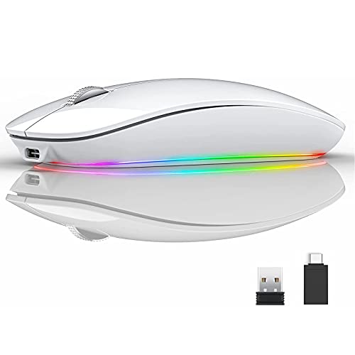Uiosmuph U15 RGB Mouse Wireless, Senza Fili Mouse Ricaricabile Mouse Wireless Silenzioso Mouse Ottico Wireless Mouse con Ricevitore Nano USB per PC/Laptop/MacBook (Bianca)