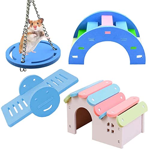 Uiouio 4 Pezzi Giocattolo per Criceti, Giocattolo da Masticare per Criceti, Criceto Swing, Casa dei Criceti, Altalena per Criceti, Hamster Rainbow Bridge, per Criceto Nano, Cincillà, Ratto, Gerbillo
