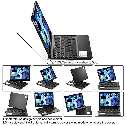 UIQELYS - Custodia per tastiera iPad Air 2020, iPad Air 10.9 (4a generazione), A2072/A2316/A2324/A2325, tastiera retroilluminata con touchpad Nero