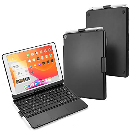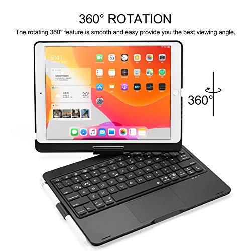 UIQELYS Custodia per tastiera iPad 2020 iPad 10.2 (8ª Gen), 2019 iPad Air 10.5, tastiera retroilluminata con touchpad, Bluetooth 360 custodia girevole per tablet da 10.2/10.5 pollici (nero)