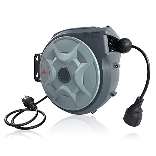 UISEBRT Avvolgicavo automatico, 20 m, avvolgitore, girevole a 180°, con cavo elettrico (grigio)
