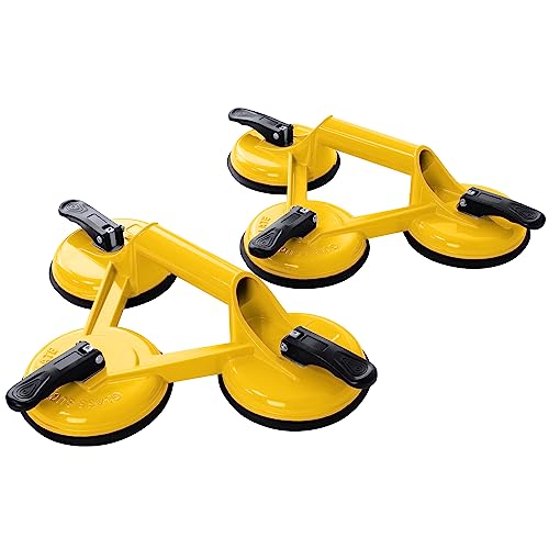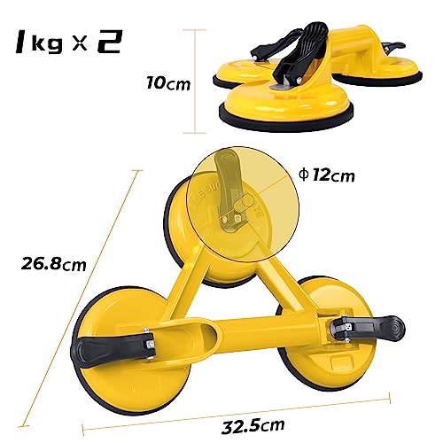 UISEBRT 2 Pezzi Ventose per Vetro - Ventosa per Sollevamento In Alluminio - 120mm Ventose per Piastrelle - Sollevatore a Ventosa per Vetro Piastrelle Pavimento - Giallo