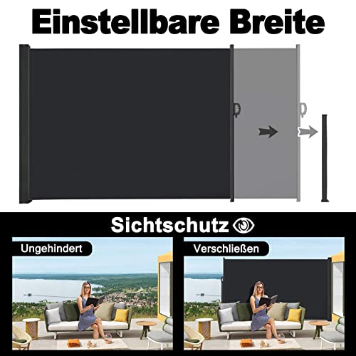 UISEBRT Tende da Sole Paravento Laterale Frangivento Estensibile Protezione Privacy per Terrazza, Balcone, Giardino (200 x 300 cm, Antracite)
