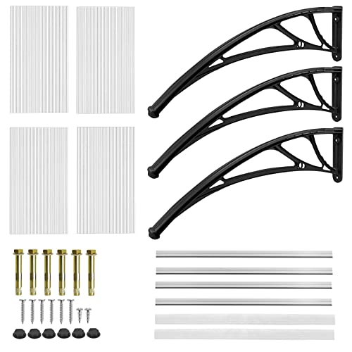 UISEBRT Tettoia per porta di casa - Tettoia per porta di casa, in policarbonato, ad arco, trasparente, spessore 5 mm, per garage, finestre, casa, balcone (200 x 100 cm, nero)