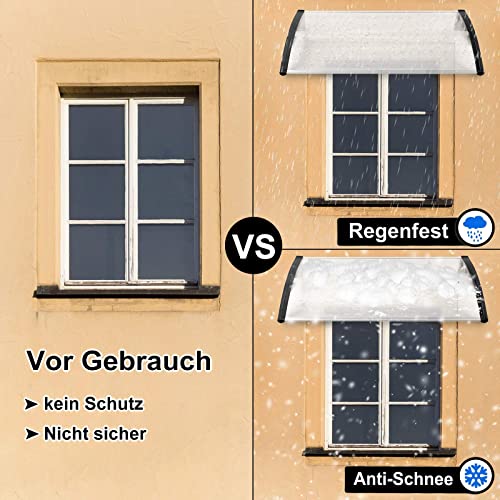 Buona resistenza alle intemperie e permeabilità alla luce: la tettoia della porta di casa è realizzata in policarbonato resistente agli urti e robusto (5 mm di spessore), che presenta le caratteristiche di resistenza alla corrosione, agli agenti atmosferici e ai raggi UV e non si deforma tra -40 °C e 120 °C. Pannello di resistenza in policarbonato semitrasparente, buona trasmissione della luce.