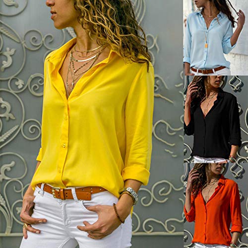UJUNAOR Camicetta Donna Elegante Elegante Camicia a Maniche Lunghe in Tinta Unita da Donna da Ufficio in Chiffon Tinta Unita