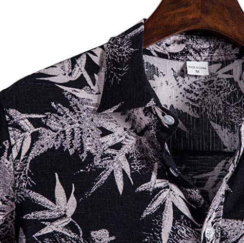 UJUNAOR Camicia da uomo in cotone e lino, a maniche corte b XXXL