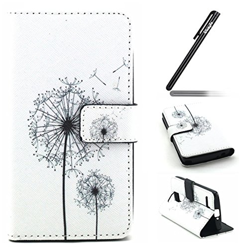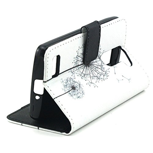 Ukayfe Custodia LG L Bello in Pelle, Portafoglio / wallet / libro Flip elegante e di alta qualità con porta carte di credito e banconote Stampa creativa Chiusura Magnetica Protettiva Cover Case per LG L Bello (D331,D335,D337) con Stilo Penna - Dandelion volare
